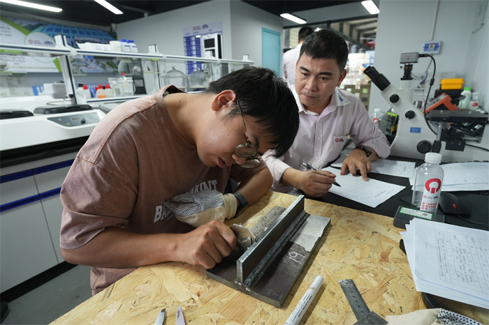 Idatzizko proba-paperean soldadura-ezagutzetik hasi eta benetako operazioan zehar soldadura bertikaleko 45 minutuko "muga bertikaleko" erronkaraino, lehiakideek garuneko indarra eta eskuko muskuluen memoria menderatu behar dituzte. Chen Jianglan-ek, Fujian Special Inspection Institute-ko zuzendariak, honakoa adierazi zuen: "Punteatzerakoan, lupa ere erabiltzen dugu soldaduraren arrain-eskaten ereduaren uniformetasuna behatzeko. Industriako lehiaketetan soilik eskuragarri dagoen estandarra da." star_border