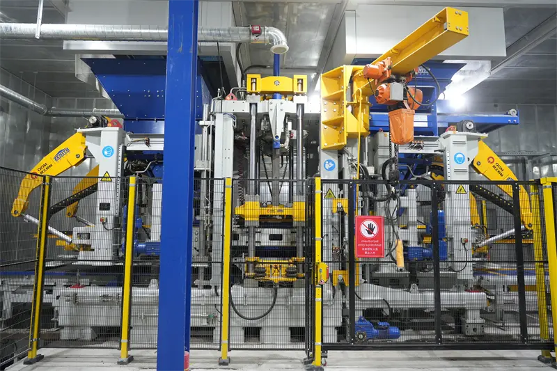 Ekoizpen-lerroaren oinarrizko ekipamenduak QGMk garatu berri duen ZN1500-2C blokeak osatzeko makina erabiltzen du, patentatutako hainbat teknologia integratzen dituena. Ekipamendua molde azkar aldatzeko sistema adimendun batekin hornituta dago, eta azkar alda daiteke produktu dibertsifikatuak ekoizteko, hala nola espaloi-adreiluak eta adreilu iragazgaitzak; Interneteko plataforma industrialean oinarrituta, denbora errealeko monitorizazioa eta ekoizpen-datuen analisi adimentsuak egiten ditu, ekipoen hutsegiteen abisuaren erantzun-denbora % 60 murrizten du eta nabarmen hobetzen du funtzionamendua eta mantentze-eraginkortasuna.