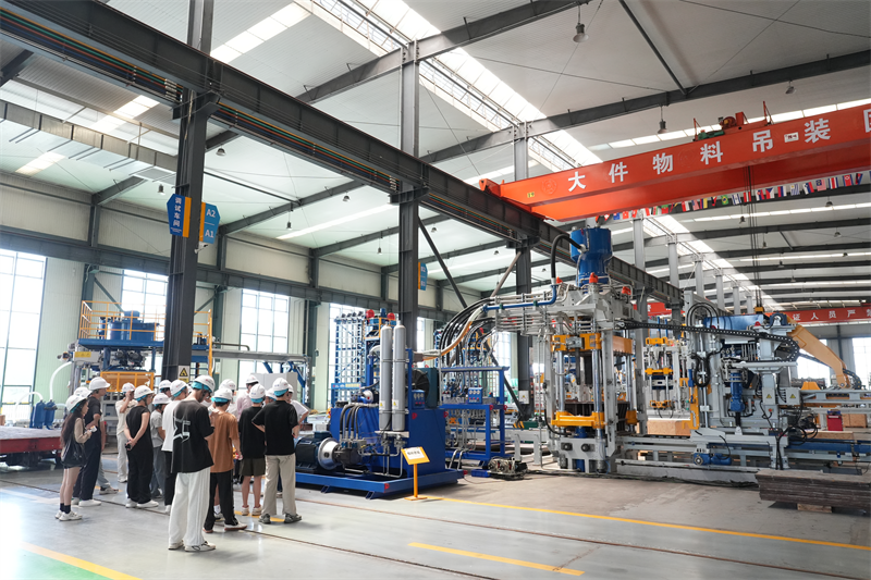 Ekoizpen tailerrean, ikasleek eko-adreiluaren ekoizpen-lerro osoa gertutik ikusi zuten. Lehengaien prozesatze zehatzetik amaitutako produktua ekoizteko prozesu konplexuraino, urrats bakoitzak ekoizpen automatizatuaren eraginkortasuna eta zehaztasuna erakusten du. Ekoizpen-ekipamendu aurreratuak ondo funtzionatzen zuen, eta prozesu automatizatu eraginkorrek nabarmen hobetu zuten produkzio-eraginkortasuna, eta kalitate-kontrol sistema zorrotz batek produktuaren kalitate handia bermatzen zuen bitartean. Ikasleak maiz gelditzen ziren behatzeko, ekoizpen eredu modernoarekiko interes handia adieraziz.
